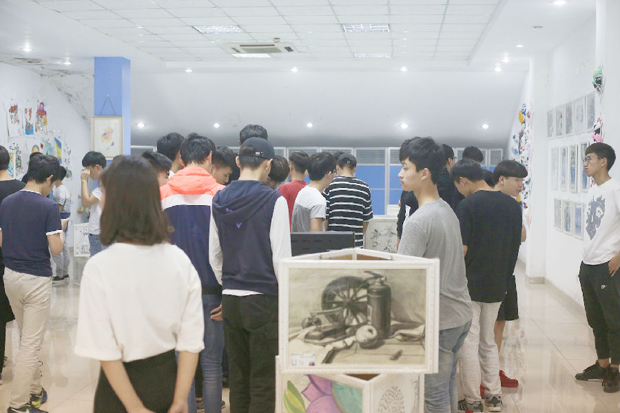 校园开放日期间,我校师生纷纷踊跃到场观展,来参展的人络绎不绝,不少人在画前驻足观望,拍照留恋,现场气氛异常火热。