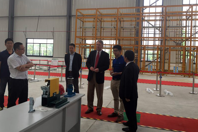 迅达中国校企合作总监李志弘先生介绍了校企合作共建学院的建设过程和人才培养情况。他说,迅达电梯非常重视电梯职业教育培训,早在1986年在苏州第1次校企合作开办了电梯安装培训班,2007年又校企合作开办了全国首个电梯工程技术大专班。如今迅达中国校企合作学校达28所,建立了7所电梯工程学院。今后将通过层层选拔机制,每年定期迅达合作院校选拔优秀毕业生,进入美国特莱恩大学,进行为期“工程管理硕士”3年出国本硕连读订单留学,其中一年美国带薪实习。为电梯行业输送更多的中高端人才。美国特莱恩大学常务副校长波克先生饶有兴趣的参观了苏州迅达的展厅,对于迅达开展的校企合作给予了高度评价,对双方今后的合作充满信心。波克先生表示在美国也缺少大量经过培训的技术工人,目前迅达校企合作必将给行业带来深远的影响。