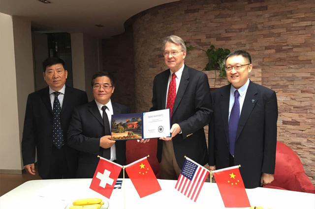 迅达中国在用梯及改造高级副总裁 matthewbiskaduros和特莱恩大学常务副校长波克先生合影