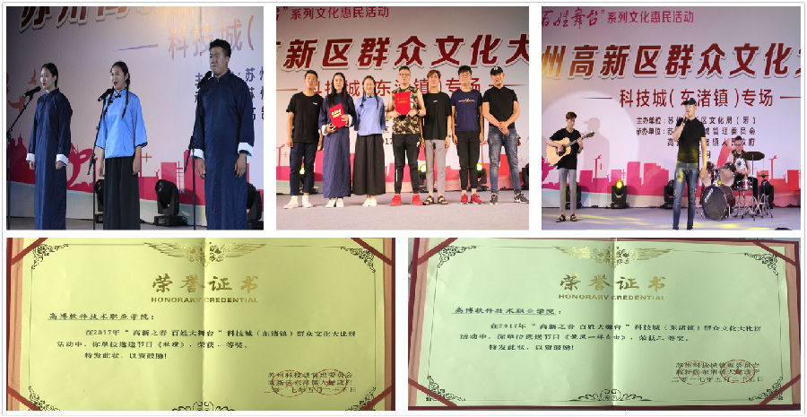 2017年5月25日晚,由苏州高新区文化局主办、科技城管委会和东渚镇人民政府联合承办的“高新之春・百姓舞台”系列文化惠民活动之群众文化大比拼(科技城专场)在时尚水岸商业广场上举行,高新区相关领导出席活动,现场氛围热烈,现场吸引了近千名社区居民驻足观看。我院团委选派的两个节目从一周前的初选中成功突围,与科技城内13支队伍共同参加了此次比赛。