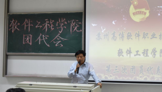 2017年5月25日,软件工程学院团员代表大会在热烈的掌声中隆重召开,全院84名团员代表和教师代表都参加了本次会议。莅临指导本次会议的领导有苏州高博软件技术职业学院李建国院长,软件工程学院王彤院长,软件工程学院党总支施泽群副书记,苏州高博软件技术职业学院学生处副处长、团委书记邹艳星老师,团委副书记胡赛老师等。