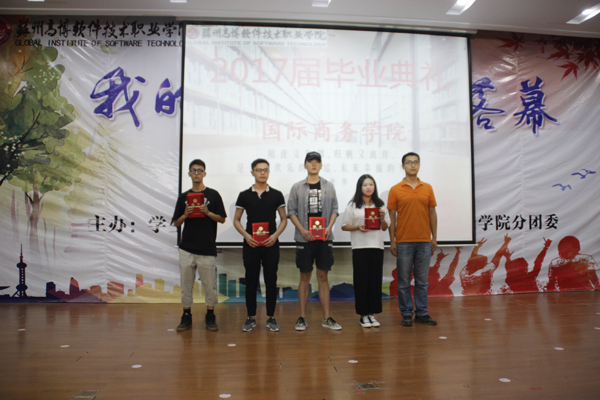 6月8日上午9点半,苏州高博软件技术职业学院国际商务学院2017届毕业生毕业典礼,在大礼堂隆重举行。参加毕业典礼有苏州高博软件技术职业学院党委书记兼院长王兆明,学院院办主任王绍福,学生处副处长邹艳星、吴歧范,保卫处副处长李思义,建筑与艺术学院党总支副书记纪冰心,国际商务学院副院长金明以及学院全体教师、辅导员,毕业典礼由国际商务学院党总支副书记胡启昆主持。