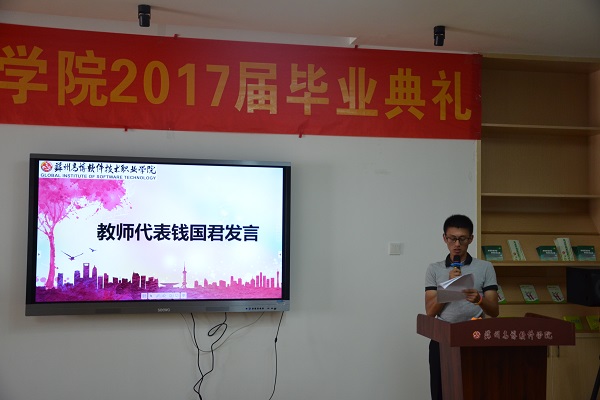 接下来,教师代表也是毕业班辅导员钱国君老师对毕业生提出几点建议:他希望同学们出了校门要学会适应社会,规划好自己的人生,保持空杯心态,不要抱怨,要有信心和勇气去追逐自己的梦想。活动现场,主持人还代读了李玉洁同学的家长寄来的一封信,信中洋溢着对孩子三年的成长和取得的荣誉的自豪与高兴,对辛勤培养孩子的学校和老师表示由衷的感激。
