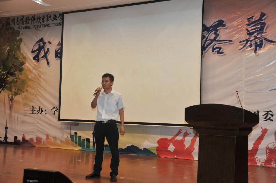 首先,艺术学院学生工作负责人纪冰心副书记致辞,回顾了这三年岁月的变迁,也通过毕业典礼这个讲台为毕业生上了迈出校门的“最后一课”,与全体毕业生们分享了关于“为人”的感悟,他希望广大毕业生不忘“实事求是”的态度,敢于担当。接下来我院学生代表朱俊杰同学讲话(现以聘为金尚装饰项目经理),感谢母校包容了同学们一路走来的困顿和青涩,让同学们从羽翼未丰的少年成长为堪当社会脊梁的青年,赋予了知识、技能、荣誉、志向和梦想。教师代表施雯老师给同学们送上了美好的祝福,并和大家一起憧憬未来;接下来金尚装饰李洋总监发表讲话,作为深度校企合作单位,与我院长期保持良好的交流互动,公司现已有很多我院毕业学生,并也在各自的工作岗位上取得了出色的成绩。接下来,由院办王主任为我院五名14级校友联络人颁发聘书。最后,由郎书记代表学校对我院毕业学子表达了毕业的祝福和殷切的希望,希望同学们在今后人生新的旅程上一要常怀感恩,二要坚守梦想,三要勇于担当,勉励毕业生同学传承和弘扬高博精神,担负时代重任,成为一名不平凡的高博人,写下自己的无悔人生。