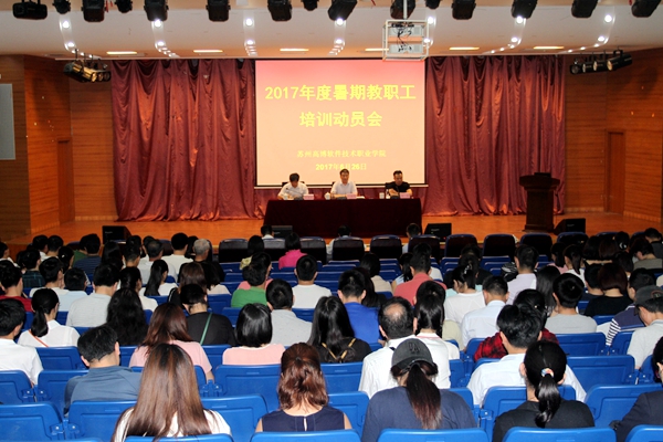 6月26日下午,我院教职工暑期学习培训动员会在实训楼报告厅举行。动员会由副院长陈家颐主持,王兆明院长作动员讲话。吴中集团代表、苏州教育投资有限公司副总经理朱磊以及院领导班子成员、全体教职工共计300余人参加会议。