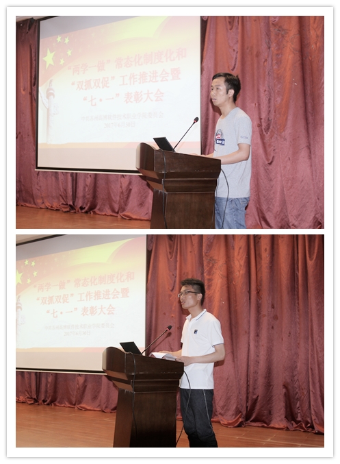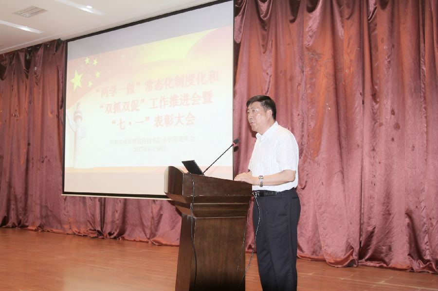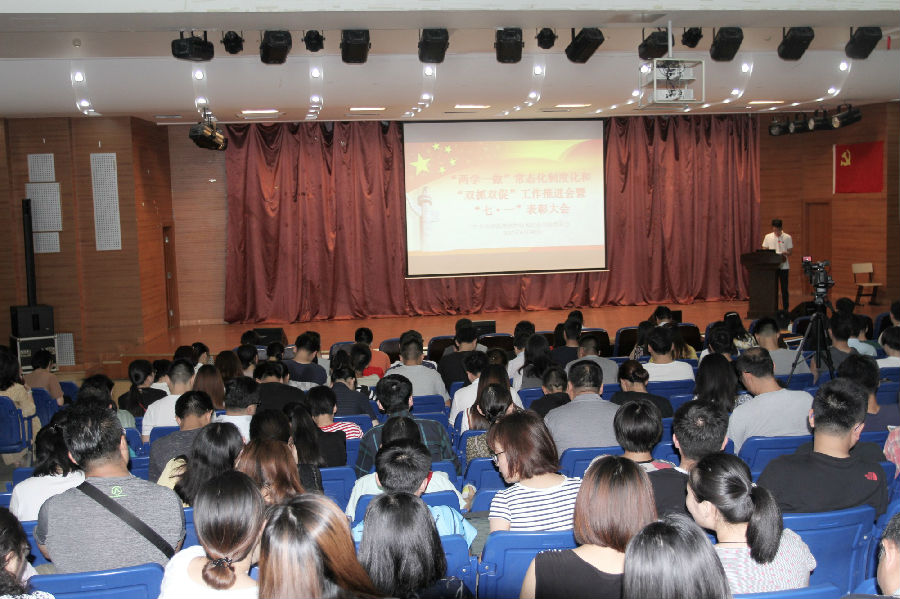 为庆祝中国共产党成立96周年,迎接党的十九大胜利召开,我院隆重召开“两学一做”常态化制度化和“双抓双促”工作推进会暨“七一”党内评优表彰大会。党委书记王兆明、副书记郎勇生、党委委员陈家颐、李世明以及全体师生党员参加了会议。会议由党委委员李建国主持。