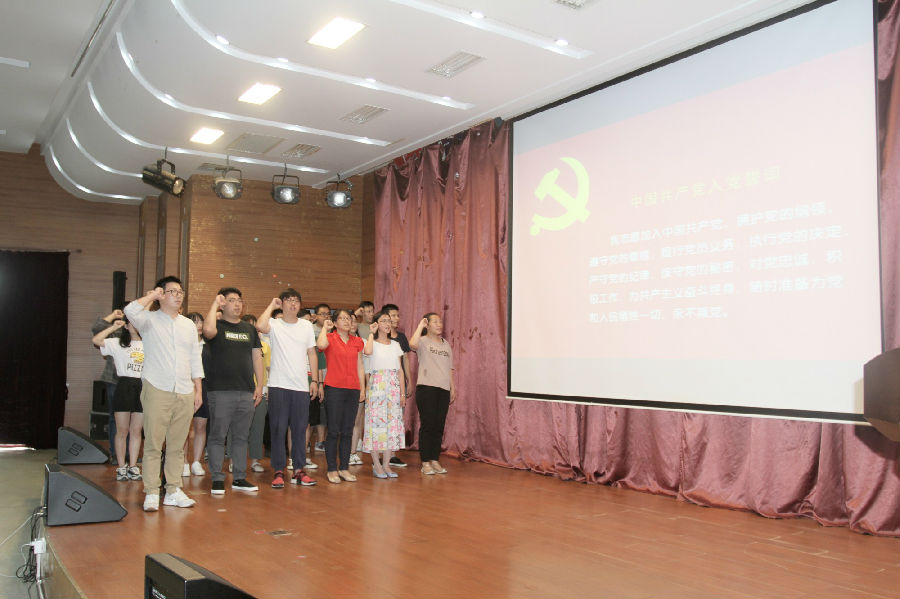 会上,二十多名新党员在学工部副部长邹艳星的带领下进行了宣誓。(院办 许秀银)