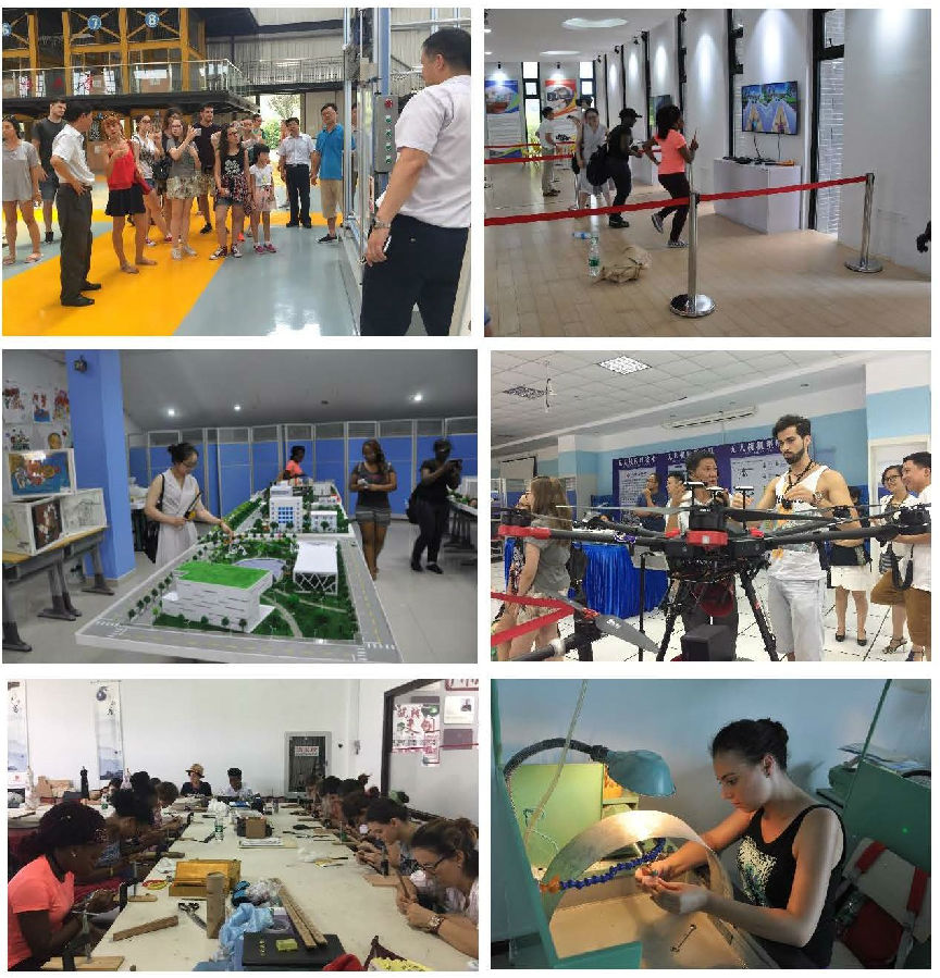 欢迎仪式后,孔子学院师生参观了我校无人机实训室、工业机器人实训室、电梯实训中心、建筑与设计实训室、vr梦想工厂、3d打印实训室、青春俱乐部等场所,各部门的解说给同学们留下深刻印象。下午同学们冒着酷暑,在苏南民间工艺学院大师的指导下,饶有兴趣地亲自动手完成核雕、玉雕作品,亲身体验了现代科技和中国传统文化的有机融合。