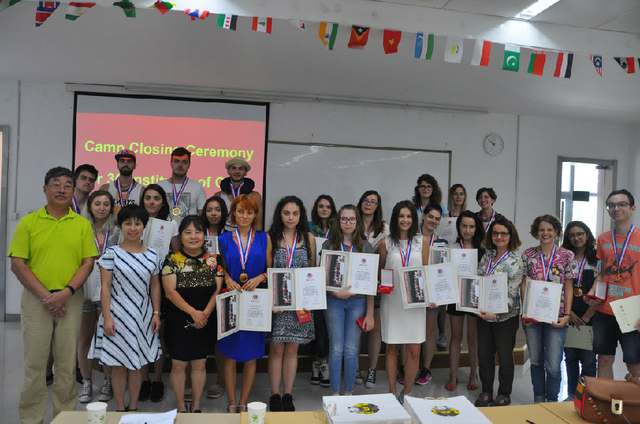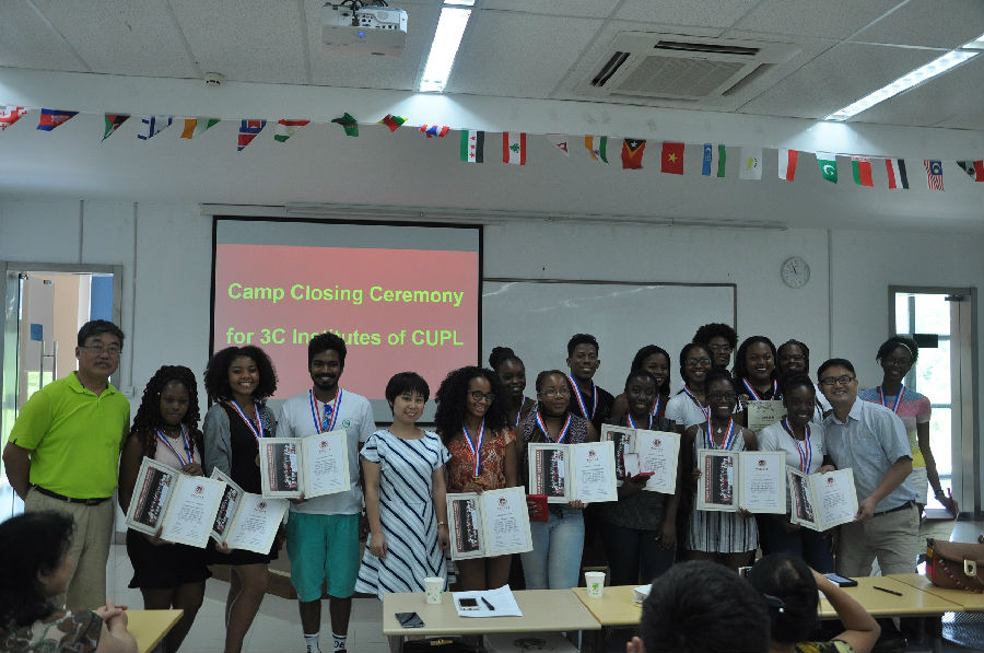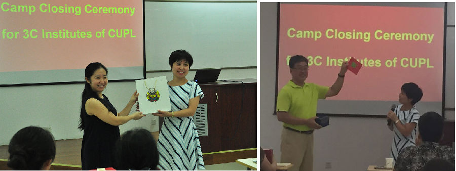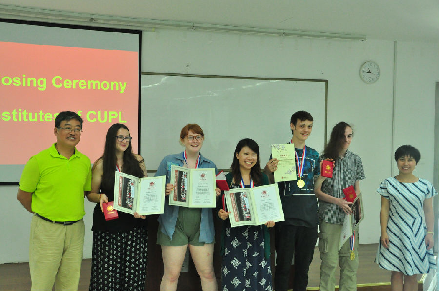 高博国际学院院长赵春铭教授应邀主持结营仪式,中国政法大学孔子学院办公室主任李丹丹女士和孔子学院中方院长为学生颁发结业证书及奖牌,祝贺同学们在本次夏令营活动中的表现优异,获得结业,希望学生将来为中国文化在世界的传播做出贡献。三个国家的学生代表分别发言,表示本次中国之行,所见所闻给他们留下深刻印象,中国的文化、中国经济和科技的发展、中国人的热情好客无一不打动着他们,回国后将向周围的朋友宣传中国,让越来越多的人能了解中国,喜欢中国。