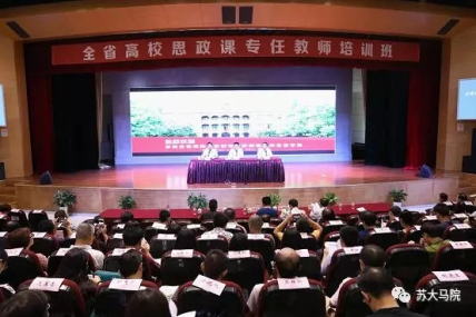 作为四个培训点之一,苏州大学承办了《毛泽东思想和中国特色社会主义理论体系概论》课等思政课教师的培训工作。江苏省教育厅副厅长、党组成员洪流,苏大党委书记江涌,党委副书记邓敏,江苏省教育厅社政处办公室干部李亚东,苏大宣传部部长、新闻中心主任陈晓强,马克思主义学院院长田芝健,党委书记张才君等出席了开班仪式。来自全省各高校的278位思想政治理论课专任教师参加了开班仪式。仪式由邓敏副书记主持。苏州高博软件技术学院基础部(社科部)主任张正炎、副主任(副书记)陶德胜、政治教研室戚福康教授以及学院思政两课兼课教师唐寒林、张志豪等分别参加南京航空航天大学、苏州大学分点培训。