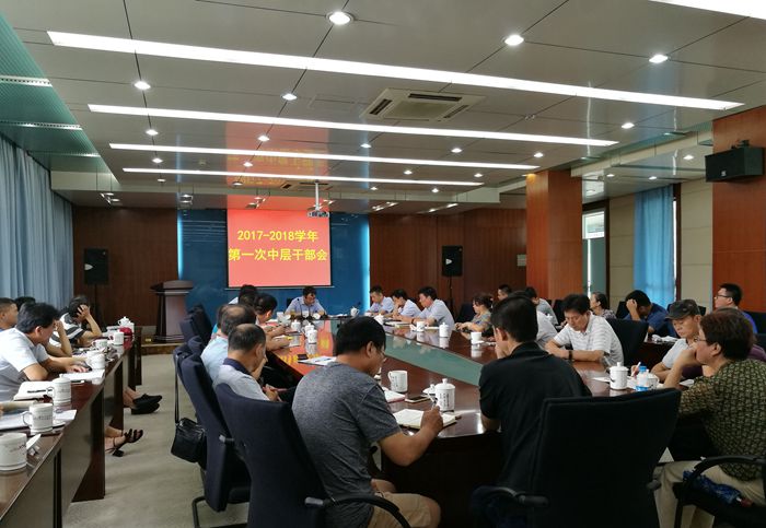 8月23日上午,我院在实训楼二楼会议室召开新学期第一次中层领导干部会,全面总结暑期工作,并部署新学期重点工作。会议由院长王兆明主持。副院长陈家颐、李建国、李世明,党委副书记郎勇生,院长助理李耕耘以及全体中层干部参加了会议。
