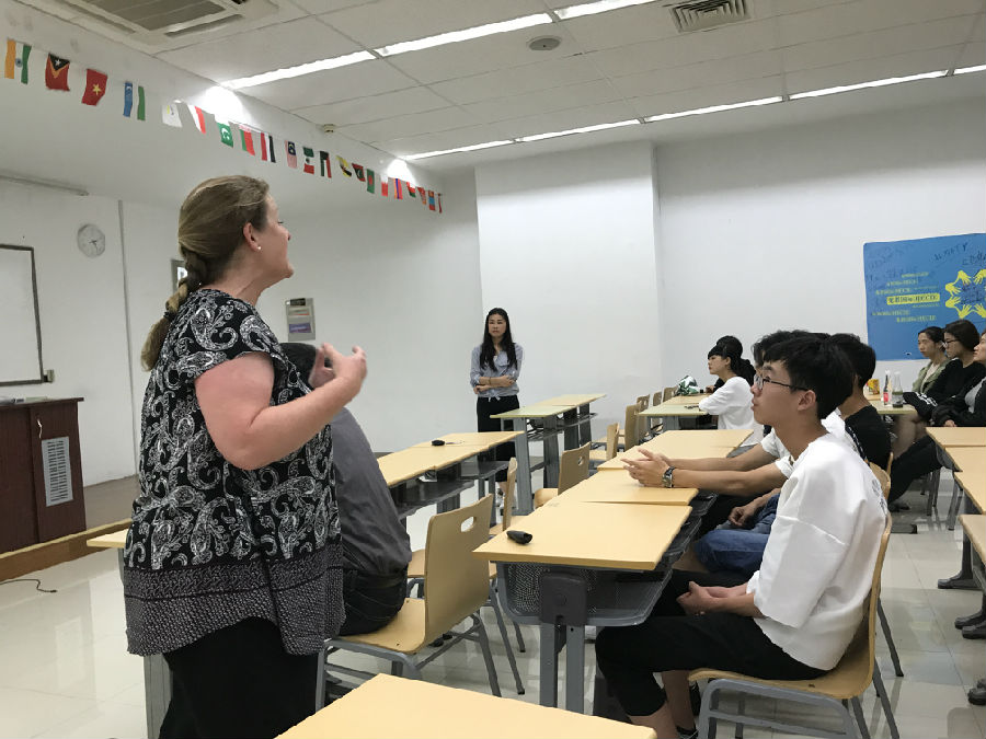 MARCUS LEE和RICHARD CHIN就课程设置、核心课程、教学组织、教学方法、学生毕业年限及要求等做出了详细讲解,并指出合作项目与其他项目的不同特点和要求。IFP项目主管PAULA充分发挥课堂能动性,采用问答形式,声情并茂地将新生带入国际基础课程项目学习氛围。