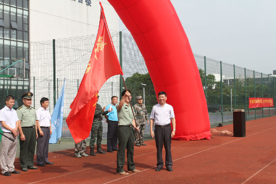 大会第五项内容由军训领导小组郎勇生组长为新生军训团授旗,为新生军训团开启了新的征程,院领导的支持与关怀奠定了新生人生路上坚实的基础。