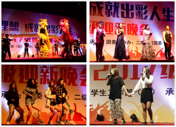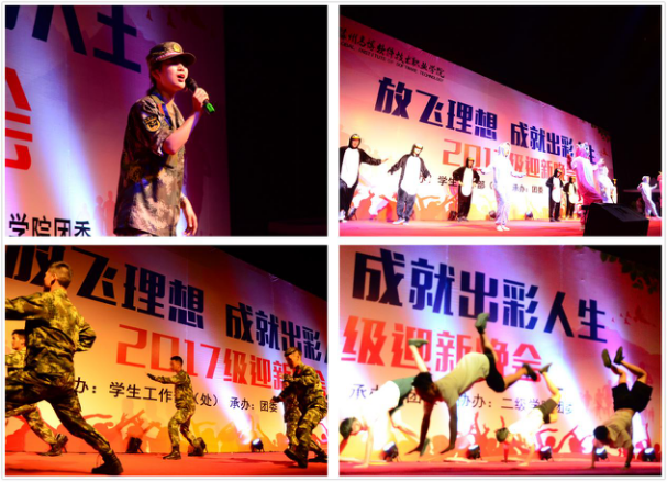 晚会在软件工程学院带来的舞龙舞狮表演中拉开帷幕。强劲的音乐,充满力量的表演,充分展示了汉族传统民俗文化的精髓。艺术团街舞队的街舞《Dancing Queen》开启了“花样年华、写意青春”的第一篇章。动感的舞步,性感妖娆的技巧,呈现出大学生艺术团街舞队的无限魅力。由2017级新生带来的歌曲串烧《野子》、《十年》、《蓝莲花》、《我的大学》等歌曲,为我们带来了丰富的视听盛宴。建筑与艺术学院带来的舞蹈《咖喱咖喱》,诙谐幽默的曲风,搭配轻松愉快的舞步,更有特别设计的服装,引人入胜,无法自拔。由大学生艺术团、国际商务学院以及信息工程学院带来的汉服旗袍秀《传承》,不仅诠释了本色的儒家文化,同时展示了华夏的精神气度,以及中华文化的奇妙之处。歌舞《叶子》,沧桑的嗓音,优美的舞蹈,仿佛身临其境,悠扬的开启了“悦动青春、圆梦高博”的第二篇章。今年夏天一档《中国有嘻哈》节目,燃起了所有年轻人的心,由大学生艺术团带来的RAP表演,掀起了晚会的高潮,新生代的表演是当下年轻人追逐的焦点,但成功的背后是坚持不懈的努力与拼搏,更是我们学习的主题。新生辅导员带来的诗朗诵《我骄傲,我们是辅导员》,用崇高的理想之灯点燃、照亮高博学子心灵的每个角落。教官的拳术表演将晚会推向了新高潮,干净利落的表演,诠释着当代军人的威武刚毅。女教官的独唱《身骑白马》,又是一种别样风情。是他们教会我们团结奋进、勇往直前的精神,向他们致敬!大学艺术团街舞队的舞蹈《Super》展现了青春的魅力,充满力量的技巧,让大家享受这激情澎湃的时刻,引领晚会开启“梦想起航、出彩人生”的新篇章。接下来的访谈环节,更是让高博学子对未来的学习和生活充满着无限的期望,邀请了具有代表性的四位同学,聂淑颖、董威、余天成、周吉,分享了他们的故事,特别是周吉同学,对无人机的执着与探索,这种精神是最值得我们学习的,难能可贵的。晚会还邀请了当天过生日的大一新生和教官,在这个值得纪念的日子为他们准备了小小的惊喜,让他们感受来自高博大家庭的温暖。团委单晓雪老师的歌曲《快乐的人请鼓掌》延续着感动和温暖,并把祝福带给所有的2017级新生,并祝愿我们的学院蒸蒸日上、勇攀高峰。最后,由学院学生干部带来的歌曲《骄傲的少年》,诉说着他们的心路历程,用豆蔻年华,诠释青春,让更多的有志青年了解并加入到学生干部队伍中,更好的为广大师生服务、为高博学院服务,唯有青春热血,不负如初少年!
