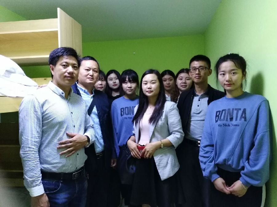 出发前,雨下得很大,但同学们难抑紧张、兴奋的心情。陈老师在一旁耐心、专业的给学生解疑答惑。同时,他又提醒大家应该注意各种可能发生的安全事项。伴随着哗哗的雨声,师生一行到达上海虹桥站。随后和招聘方一起送同学们去事先为他们租好的公寓。经过近四个小时,到下午两点多各种手续终于办妥。尽管大家还没吃午饭,也很疲惫,但看到租住房间新置的木床、衣柜、洁净的被褥,还有内部卫生间、洗衣房、饮水机,环境很温馨,大家很满意。最后,陈粟裕副书记代表系部勉励同学们要对自己、对家人、对实习单位负责,要能够吃苦耐劳,要有强烈的诚信意识和纪律观念,给用人单位、给社会、给母校留下好的口碑。