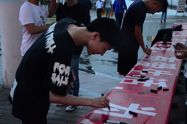 尽管天气不好,但我们的活动还是得到了很多同学的积极参与,路过的同学都纷纷参与我们的签名活动,负责同伴活动的学生干部还就有些同学的疑问进行解读,并发放了宣传材料。