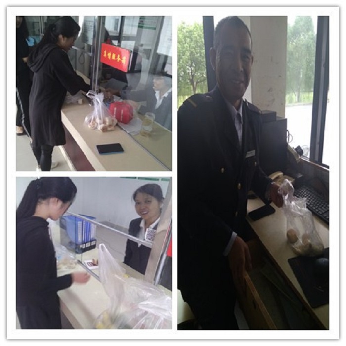学生干部为仍坚守在岗位上的学校工作人员送月饼