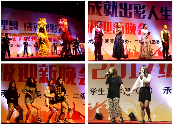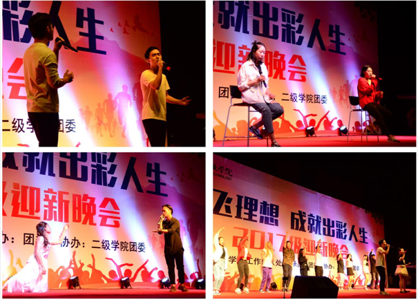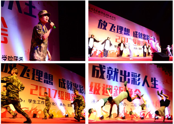 晚会在软件工程学院带来的舞龙舞狮表演中拉开帷幕。强劲的音乐,充满力量的表演,充分展示了汉族传统民俗文化的精髓。艺术团街舞队的街舞《dancing queen》开启了“花样年华、写意青春”的第一篇章。动感的舞步,性感妖娆的技巧,呈现出大学生艺术团街舞队的无限魅力。由2017级新生带来的歌曲串烧《野子》、《十年》、《蓝莲花》、《我的大学》等歌曲,为我们带来了丰富的视听盛宴。建筑与艺术学院带来的舞蹈《咖喱咖喱》,诙谐幽默的曲风,搭配轻松愉快的舞步,更有特别设计的服装,引人入胜,无法自拔。由大学生艺术团、国际商务学院以及信息工程学院带来的汉服旗袍秀《传承》,不仅诠释了本色的儒家文化,同时展示了华夏的精神气度,以及中华文化的奇妙之处。歌舞《叶子》,沧桑的嗓音,优美的舞蹈,仿佛身临其境,悠扬的开启了“悦动青春、圆梦高博”的第二篇章。今年夏天一档《中国有嘻哈》节目,燃起了所有年轻人的心,由大学生艺术团带来的rap表演,掀起了晚会的高潮,新生代的表演是当下年轻人追逐的焦点,但成功的背后是坚持不懈的努力与拼搏,更是我们学习的主题。新生辅导员带来的诗朗诵《我骄傲,我们是辅导员》,用崇高的理想之灯点燃、照亮高博学子心灵的每个角落。教官的拳术表演将晚会推向了新高潮,干净利落的表演,诠释着当代军人的威武刚毅。女教官的独唱《身骑白马》,又是一种别样风情。是他们教会我们团结奋进、勇往直前的精神,向他们致敬!大学艺术团街舞队的舞蹈《super》展现了青春的魅力,充满力量的技巧,让大家享受这激情澎湃的时刻,引领晚会开启“梦想起航、出彩人生”的新篇章。接下来的访谈环节,更是让高博学子对未来的学习和生活充满着无限的期望,邀请了具有代表性的四位同学,聂淑颖、董威、余天成、周吉,分享了他们的故事,特别是周吉同学,对无人机的执着与探索,这种精神是最值得我们学习的,难能可贵的。晚会还邀请了当天过生日的大一新生和教官,在这个值得纪念的日子为他们准备了小小的惊喜,让他们感受来自高博大家庭的温暖。团委单晓雪老师的歌曲《快乐的人请鼓掌》延续着感动和温暖,并把祝福带给所有的2017级新生,并祝愿我们的学院蒸蒸日上、勇攀高峰。最后,由学院学生干部带来的歌曲《骄傲的少年》,诉说着他们的心路历程,用豆蔻年华,诠释青春,让更多的有志青年了解并加入到学生干部队伍中,更好的为广大师生服务、为高博学院服务,唯有青春热血,不负如初少年!