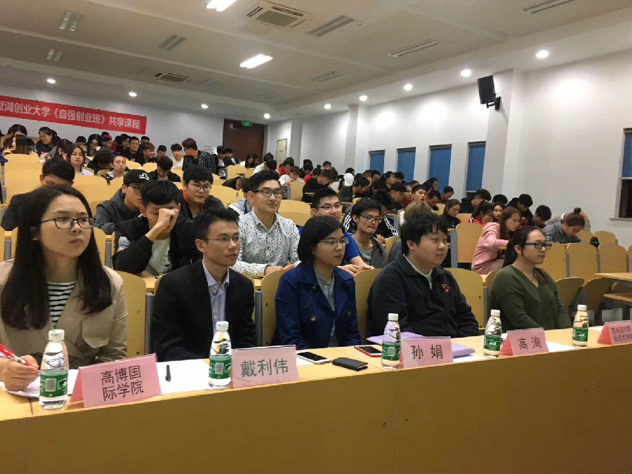 10月20日晚上6点半,由国际学院与独墅湖创业大学、武汉大学苏州研究院等四家单位合作共建的共享课程项目《自强创业班》在国际学院二楼阶梯教室盛大开幕,国际学院各年级共100多名同学参与了课程学习。