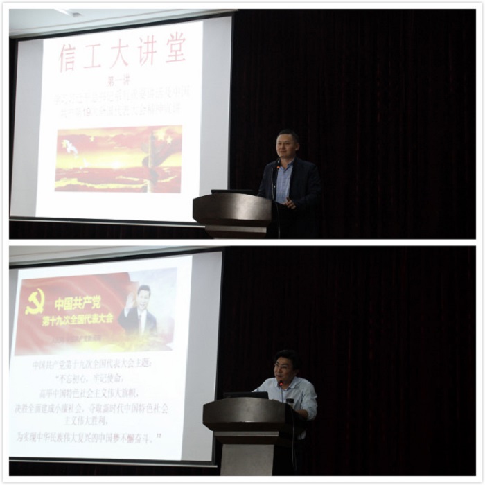 2017年11月1日下午两点,信工学院全体大二学生齐聚学院报告厅,认真聆听了陶德胜老师宣讲的十九大思想灵魂精髓要义,信工大讲堂正式开讲。