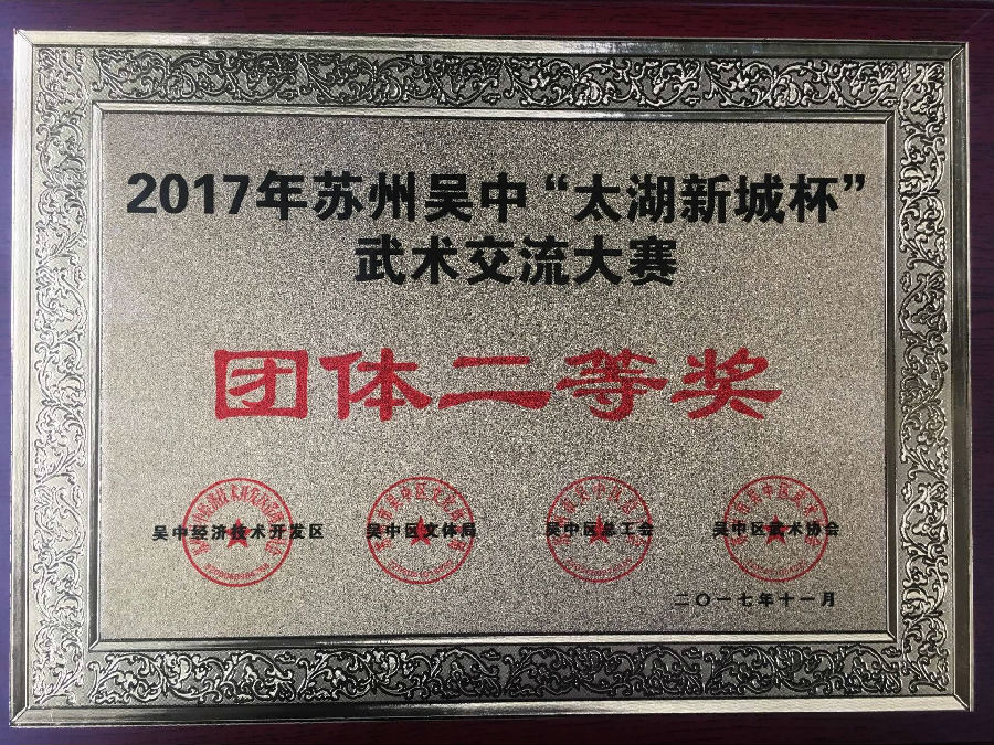 由苏州吴中经济开发区、吴中区体育局、吴中区总工会、吴中区武术协会联合主办的2017年苏州吴中“太湖新城杯”武术交流大赛,于2017年11月4日在吴中区举行。全市共有近150个武术代表队、1700多名武术爱好者参赛。