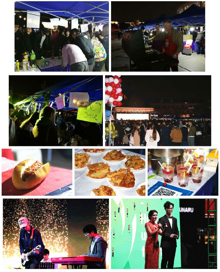11.15日晚上的文星广场,各色美食的香味顺着音乐的节拍在空气中游走,肉骨茶、沙爹、德国纯手工香肠、现烤面包以及法式特调饮品……一年一度的独墅湖中外文化嘉年华再次拉开帷幕。国际学院与独墅湖科教创新区内其他各高校一起,参加了此次嘉年华盛会。