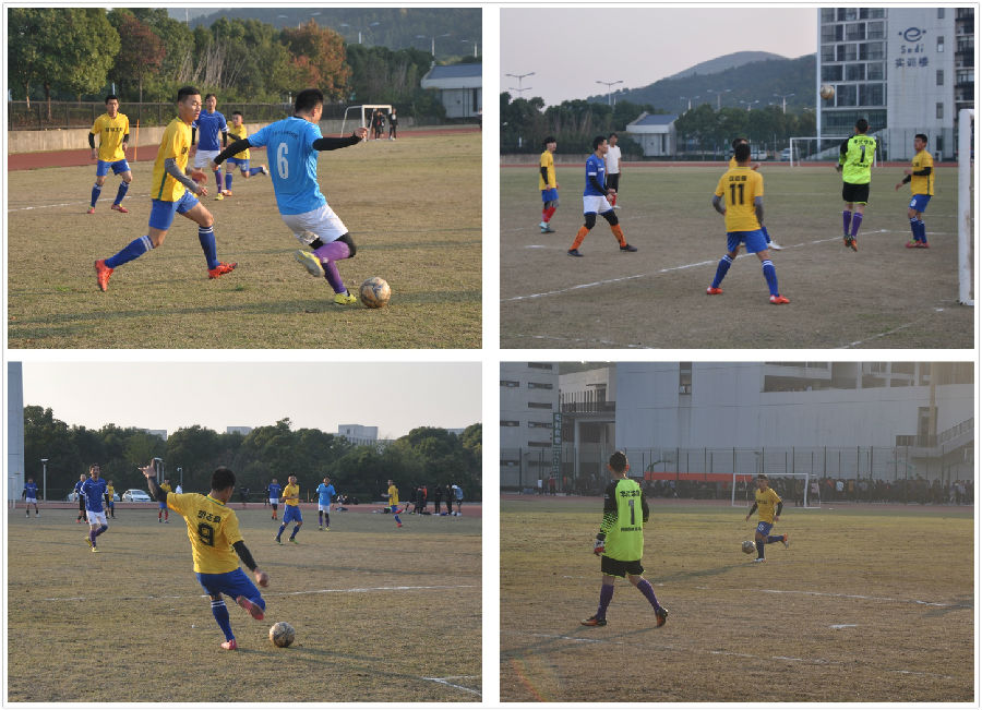 比赛开始前,两队分别围在一起鼓劲,希望自己的队伍取得好成绩。在比赛的前20分钟两队的比分始终为零比零,场上的气氛格外的令人紧张,让人目不转睛的盯着,生怕漏了哪一分一秒,哪个队伍就率先得分。在场上双方队员的焦灼的心情中,教工队终于在比赛上半场得到了第一分。中场休息时间,啦啦队的同学们纷纷围上去为自己的球员鼓劲,递水,递毛巾等,希望他们在接下来的比赛中取得更好的成绩。下半场比赛两队都替换了球员上场,在此之前已经养精蓄锐的球员们都使出了自己的浑身解数,最终双方以2:2的成绩,进入令人激动的点球大战。双方守门员拼死抢扑,5场发球后,最终,信工一队以3:1战胜教工队,获得本届足球联赛冠军。