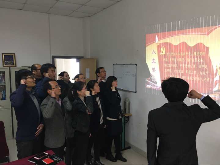 会议第二阶段,在传达了中共苏州市委组织部、苏州市委教育工委组织的在苏学校基层党组织书记集中轮训班精神之后,由基础部(社科部)副主任、副书记陶德胜领誓,以全体党员着正装、佩党徽、集体宣誓的形式,严格按照市委教工委基层党组织书记培训班的要求,全体党员教工着正装、佩党徽,重温入党誓词,入党誓词仪式庄严肃穆,基础部(社科部)全体党员教师们集体上了一堂生动活泼的实践党课。