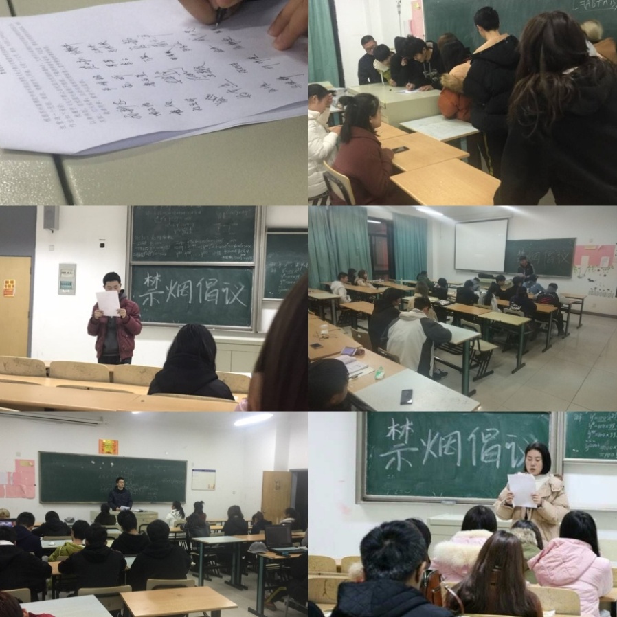2017年11月24日,为更有效开展此次禁烟活动,建筑与艺术学院全体辅导员老师在学工会议室开展了禁烟的前期布置工作,纪冰心副书记首先宣读了学校关于禁烟的相关通知,各位老师积极发言献策,会上确定了一系列开展禁烟活动的措施。根据会议精神,各部门,各位老师积极开展落实工作。团委召开学生干部集体会议,学生干部率先垂范,带头遵守“禁烟”的相关规定,并且通过禁烟宣传海报、微信公众号、微博等方式进行宣传。其次由建筑与艺术学院全体辅导员老师引导带队,安排学生干部在各宿舍楼层、宿舍内部进行巡查,教育吸烟人员;另外各班积极开展了“禁烟”主题班会,针对实际情况采取讲心得、谈危害等方式,对学生中吸烟人群加强教育,并且制定了禁烟自律承诺书,同学们纷纷自觉签名承诺做禁烟先行者。直到目前,活动进行两周以来,禁烟活动取得了良好的效果。