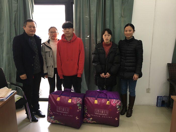 陈书记代表学校详细询问两位同学的家庭情况、学习生活情况,引导他们正确看待当前的困难,把贫困作为激发自己成长成才的内在动力。随后,陈书记向两位同学详细介绍了学校的资助政策,勉励他们刻苦学习,争取拿到国家励志奖学金,减轻家庭负担。同时,陈书记为李冬梅同学积极联系了勤工助学岗位。谈话结束后,陈书记将学校赠送的两床棉丝发放给两位同学。