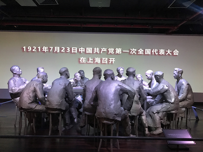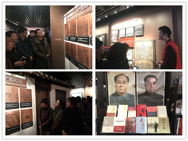 中共一大会址是一处普通的石库门两层老楼,底层的18平方米房间就是“中共一大会址”。进入馆内,党员们立刻被庄严的氛围所感染。大家带着激动、崇敬又有些好奇的心情,漫步在中共一大会址的展厅,恍惚中犹如跨越时空,亲历那改变中国历史的拐点,馆内排放了许多中国共产党的历史文物,收集了很多革命战争时期的战况信息,展示了中共革命前辈的资料,大家不自觉地放慢脚步,用心去体会和铭记展品中记载下的中国共产党光荣与辉煌的时刻。最为吸引大家的是按照“一大”会议室原状开辟的蜡像室,室内陈列了当年参加会议的革命先驱者的蜡像,包括毛泽东、何叔衡、董必武等共13人,栩栩如生的蜡像重现了当年的会议现场,党员们都为革命先辈艰苦卓绝的奋斗历程所感动。