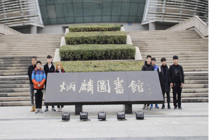 学生会干部代表在炳麟图书馆合影留念
