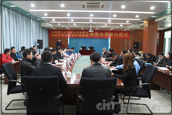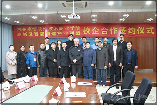 1月11日上午,学院与苏州高新区智能制造企业联盟在实训楼会议室举行校企合作签约仪式。高新区人力资源开发管理中心副主任刘军、高新区人力资源行业协会秘书长夏婷玉、市人社局巡视员于栋梁、高新区人社局领导龚路林以及企业联盟负责人出席签约仪式,学院副院长陈家颐、机电工程学院院长廖振强、常务副院长包振宇、副院长蔡伟义、专业教师以及校企合作办副主任马浩参加仪式。签约仪式由包振宇常务副院长主持。