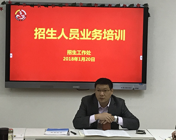 为做好2018年学院招生工作,招生工作处于1月20日-21日在学院青春健康俱乐部举办了为期两天的招生业务培训,主要围绕上海高招综合改革、学院介绍与专业介绍、PPT制作学习以及招生人员应具备的市场开拓能力和基本功等多个方面展开培训。李世明副院长和全体招生人员参加了本次培训。培训会议由夏正荣副处长主持。
