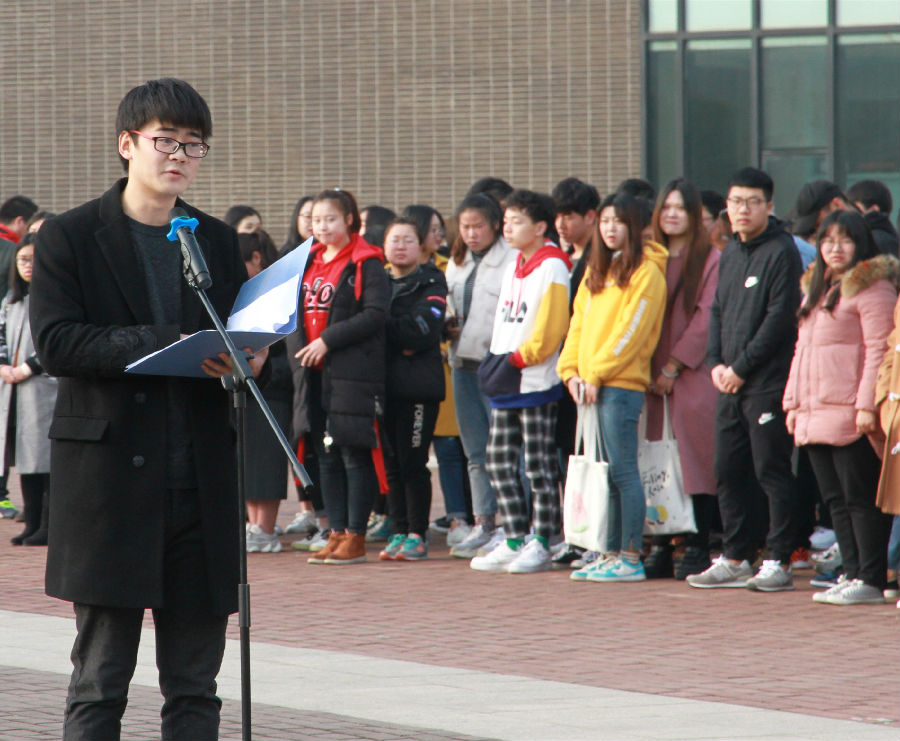 艺术与建筑学院1633班李楠同学和国际商学院分团委书记王鑫老师分别代表学生和教职工做了国旗下的发言,他们都对新学期提出了新的期望,呼吁全体同学认真学习党的十九大精神,认真学习习近平新时代中国特色社会主义思想,齐心协力、开拓创新,带着强烈的责任感和使命感,积极投入到学习中去,用智慧与汗水迎接新学期,努力成长为担当民族复兴大任的时代新人。