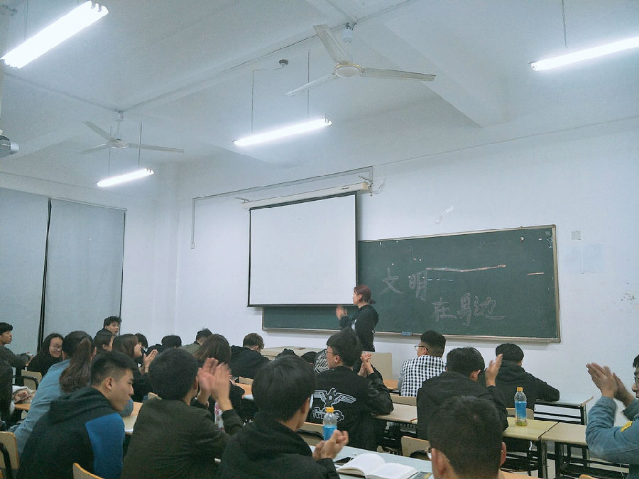 为传承中华美德,提高大学生整体素质,丰富班风建设内涵。国际商学院1738班利用晚自习在教学楼1-409教室召开了“文明,在身边”的主题班会。本次班会由团支部书记顾玲瑜同学主持。