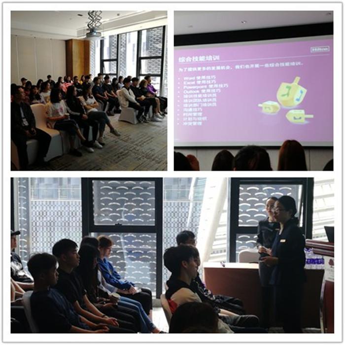 随后,朱总监组织学生前往多功能会议厅进行简要交流培训,详细介绍了酒店的各项制度、员工福利及职位晋升途径等。互动交流环节气氛热烈,同学们踊跃发言,提出了自己的困惑,朱总监都一一解答。同学们表示,参加此次参观活动,开阔了眼见、增长了见识,虽然时间短暂,但对酒店专业未来前景有了初步认识,部分学生表露出强烈的想留在酒店进行实践锻炼的意愿。