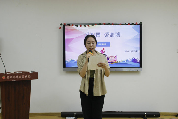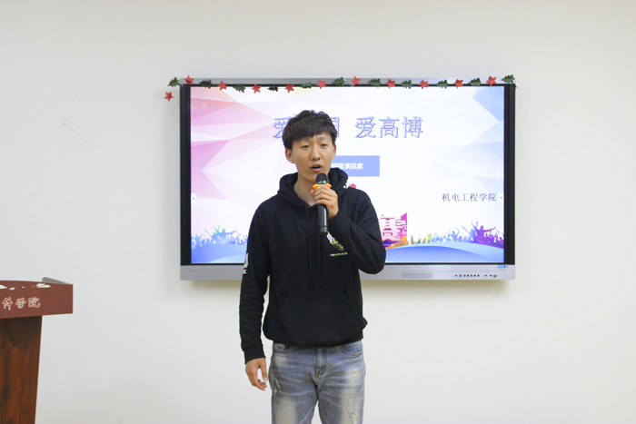 为了进一步培育和弘扬社会主义核心价值观,激发我院学生的荣校爱校意识,我院举办以“爱祖国*爱高博”为主题的演讲比赛初选,本次演讲吸引了众多同学报名。经过本轮初选,本院将选拔出三位优秀的演讲者代表机电学院参加学校的演讲比赛决赛。