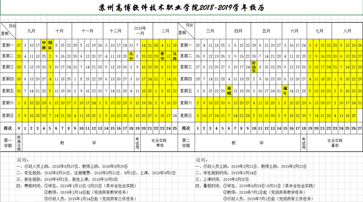2018-2019学年校历