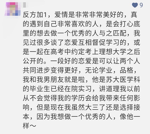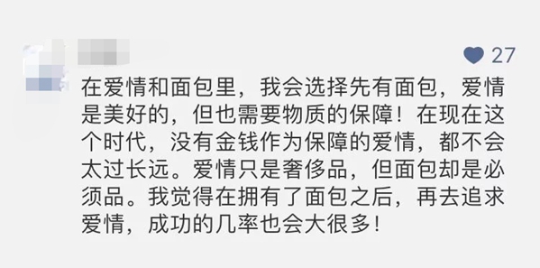 通过网络辩论的投票,网友的留言以及校园采访,我们发现:75%的学生认为谈恋爱不会影响学习;75%的学生选择先要面包再要爱情。这样的数据让我们认识到现在90后和00后的学生,他们在谈恋爱时,主观上是觉得学习重要,且恋爱不会影响学习的,但在客观上,因为恋爱而导致旷课、补考和重修的不在少数;而在面对恋爱时,这些十七八岁的学生,又表现出了不符合他们年龄特点,似乎已经看透了爱情,被爱情伤透了,只要面包就好。因此,这给予我们在实际的学生管理中很重要的启示,我们的学生比他们看起来更向往爱情,但他们其实不懂什么是爱情,因此一旦失恋后容易情绪崩溃,难以处理,甚至导致一些恶性事件的发生。