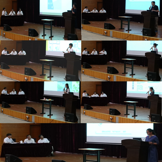会议第二项安排为2018年中青年教师说课竞赛现场展示环节,来自各个二级学院的7名优秀教师根据单元教学设计方案就课程定位、教材分析、学情分析、教法设计、学法分析、教学效果评价、特色与创新等方面展开说课示范。陈家颐、徐汀荣、王则斌三位专家从教学内容、教学方法、表达能力、课件制作等方面给予每位参赛教师现场点评、指导及提问。现场答辩环节气氛热烈,专家点评妙语连珠,教师答辩准确精彩,说课竞赛也将本次会议推向了最高潮。经过11位专家评委现场评分,朱徐庆老师荣获一等奖,袁晖与刘秀娥老师荣获二等奖,周庆荣、闫利霞、王东生与朱佾老师荣获三等奖。