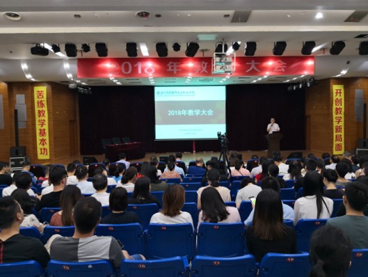 7月5日上午九点,学院在学术报告厅召开2018年上半年教学工作大会,陈家颐副院长、倪院助、薛小玲院长特别助理、各二级学院院长、特聘教授、全体专兼职教师以及教务处、科研处、信息建设与管理中心全体人员参加了本次大会。会议由教务处常务副处长胡玮主持。