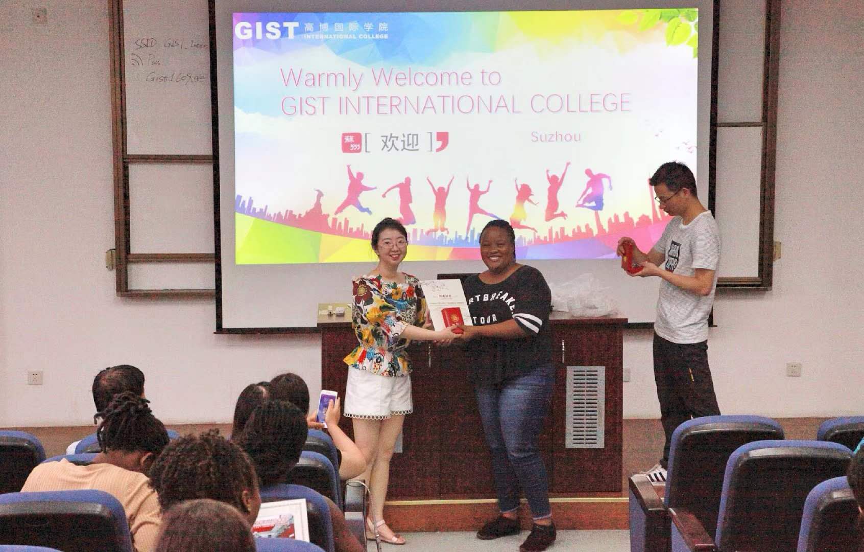 仪式上我校国际合作交流处处长、国际学院院长卢宁教授代表学院对来访的政法大学教师、第二批三所孔院的师生表示了欢迎,对巴巴多斯孔子学院的师生顺利完成苏州段的学习表示祝贺。中国政法大学孔子学院办公室曲主任向完成学习的巴巴多斯孔院学生颁发了证书和奖牌,鼓励学生以后进一步学习和了解中国文化。