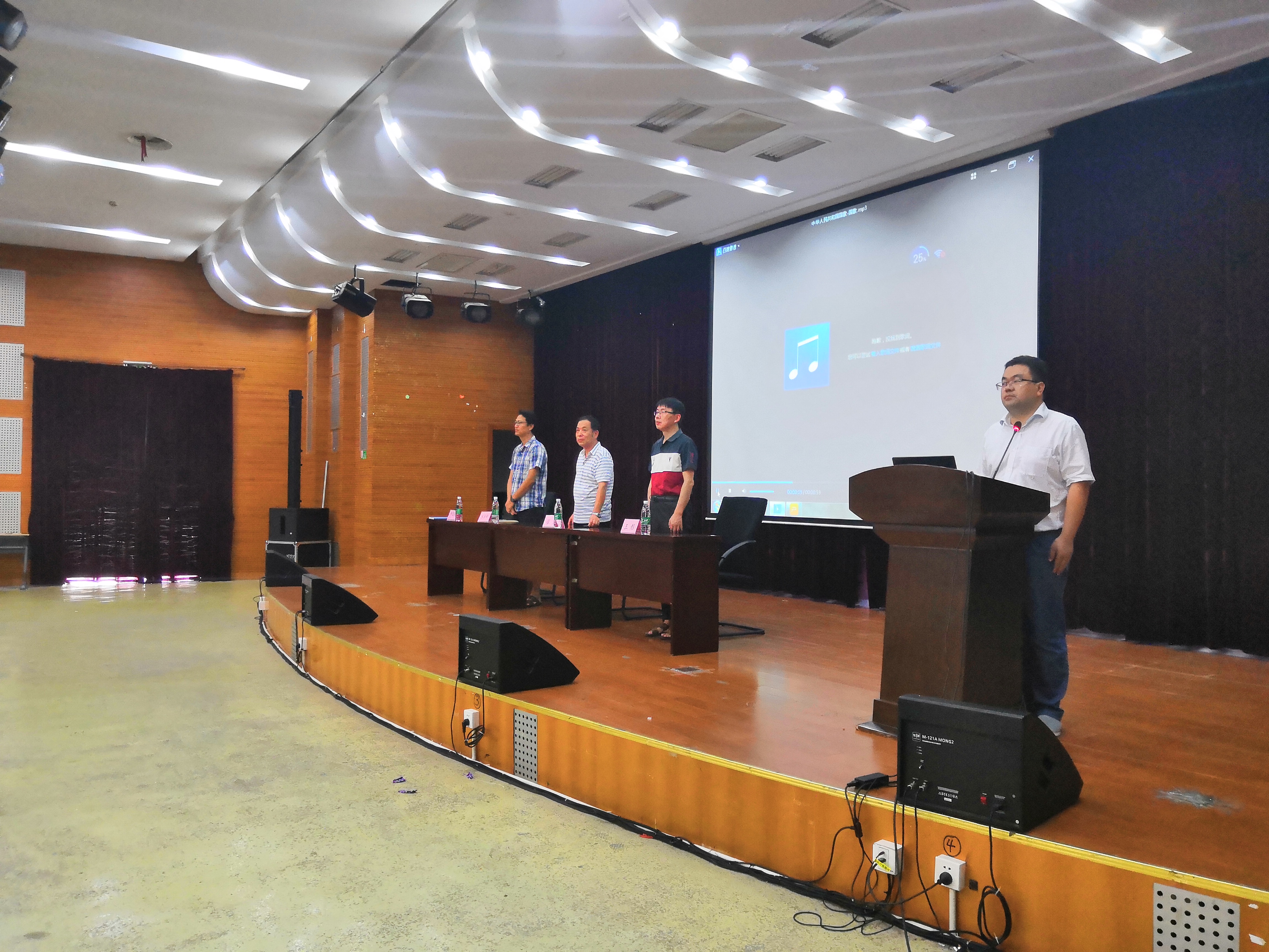 全体起立,奏唱国歌