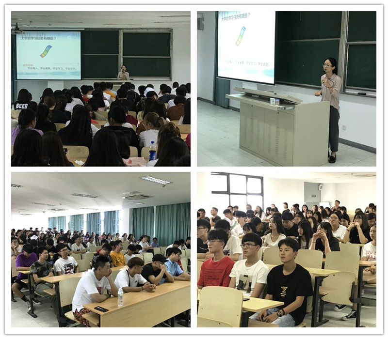 课堂伊始,王瑞老师通过几个小案例讲述了同学们大学生涯中会遇到的几个关键问题,鼓励大家树立正确的人生观、价值观、世界观和恋爱观,利用开学之际帮自己制订一个三年规划,同时她希望同学们在学习上要整合资源,刻苦钻研;在生活上要积极乐观,团结互助;在情感上要正确处理好恋爱、学业和生活三者之间的关系。王瑞老师从学校介绍、认识大学到如何度过大学生活,既有学生生涯发展的成长哲理,又有个人经验的谆谆教诲,处处体现了对新生同学们的殷切关怀和希望。最后,张红主任结合自己丰富的工作经验,幽默风趣的向同学们讲述了如何尽快适应大学,合理规划大学三年的理念,启发了同学们生涯规划的意识,台下新生聚精会神,听到精彩处掌声雷动。