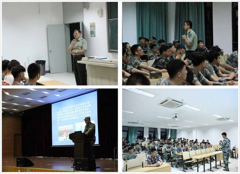 我校人文社会科学学院常务副院长张正炎老师、张志豪老师和机电工程学院顾诚老师分别担任此次新生军事课的主讲。他们将从《从近代中国命运到强军梦》、《大学生为什么要上军事理论课》、《半岛局势》、《中国国防》、《中国军事思想》、《国际战略环境》、《军事高技术和信息化战争》等内容进行授课。本次军事理论课的上课时间均在晚间进行,将持续至军训结束,历时14天。