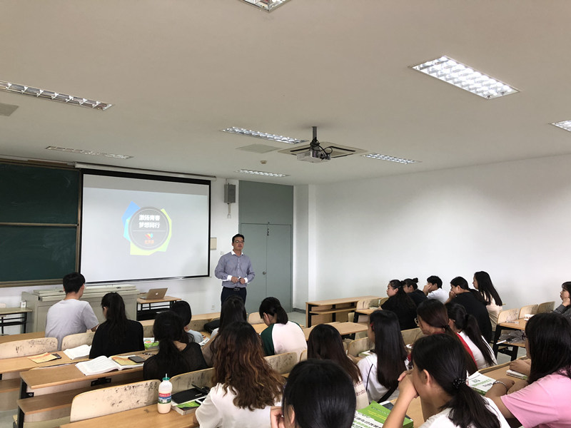 随后,赵小明园长为同学们进行了宣讲。红黄蓝于1998年创建中国第一家亲子园,首创0-6岁一体化早期教育模式,先后打造红黄蓝亲子园、红黄蓝幼儿园、竹兜快乐家庭三大教育品牌,业务涵盖亲子园教育、幼儿园教育、家庭教育产品、慧心父母课堂、儿童艺术团等多个领域,成为中国规模最大的0-6岁一体化、综合性的教育机构,致力于培养健康、快乐、有竞争力的儿童。经过十余年的快速稳健发展,公司已于2017年在纽交所正式上市。目前遍布全国300多个城市,拥有 1000多家亲子园和300多家高品质的幼儿园。