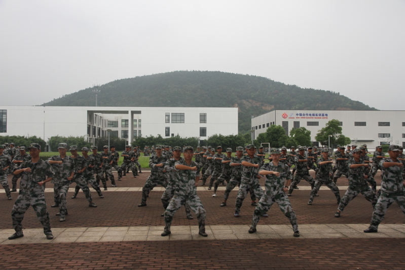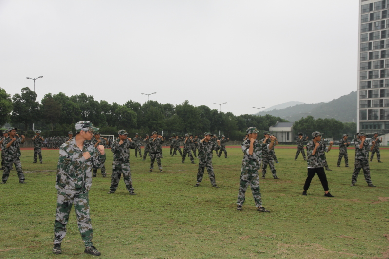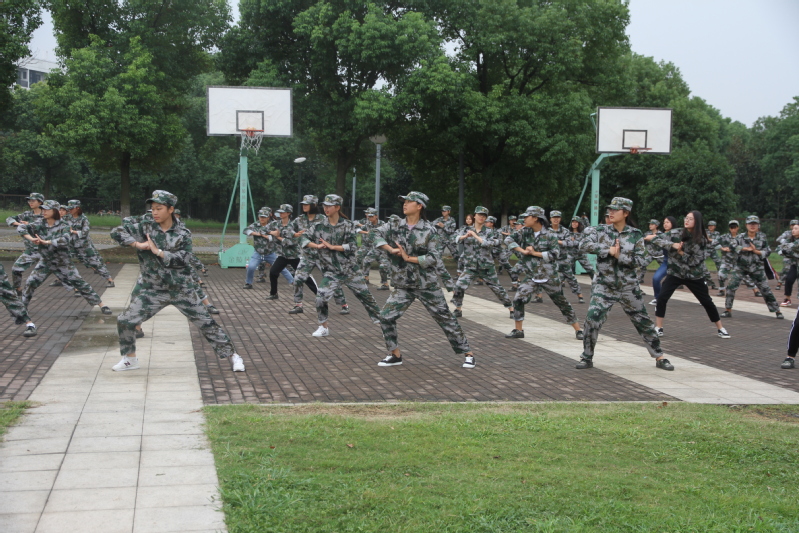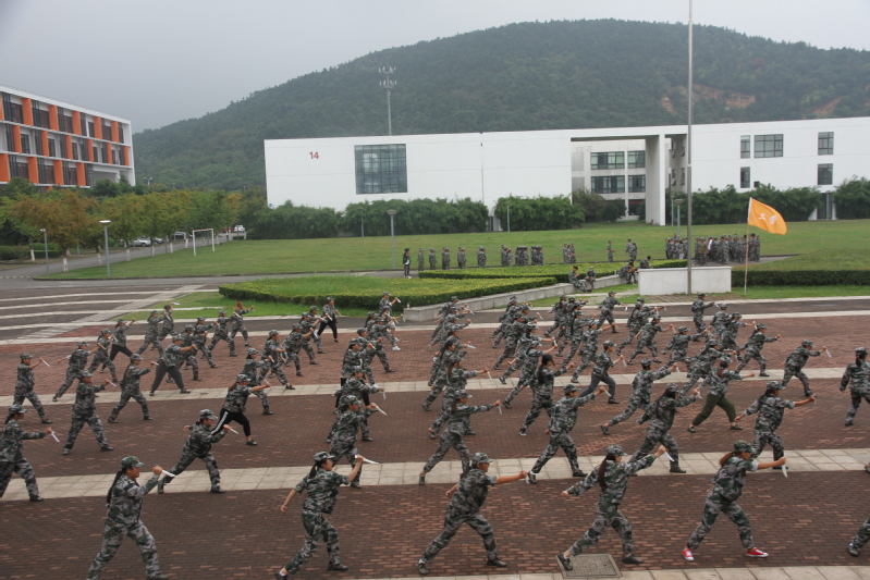9月21日下午,伴着“杀!杀!杀!”的口号声,新生军训团男女军体拳、擒敌拳、匕首操四个表演方阵正在操场上进行着紧张的训练。