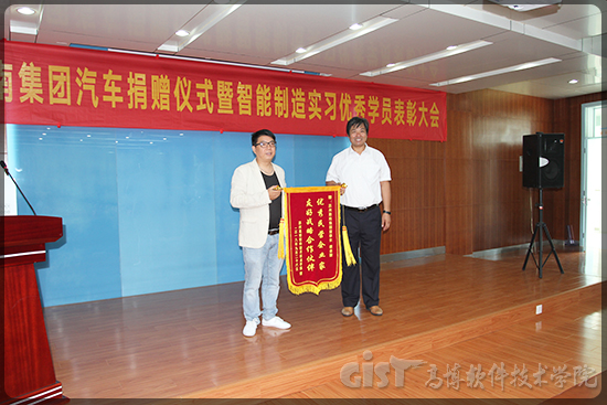 随后,勤南集团向学校捐赠汽车6辆,总价值达23万元,张明燕副校长代表学校接受集团捐赠;机电工程学院蔡伟义副院长、资产管理处耿明华处长为优秀实习生颁发证书;陈家颐副校长代表学校授予费金陵董事长“优秀民营企业家”、“友好战略合作伙伴”称号。