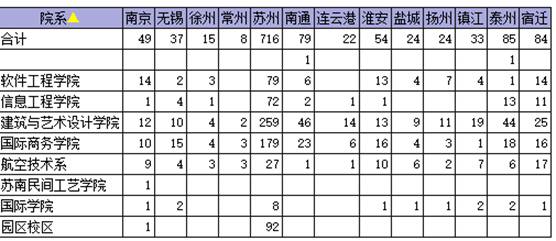 2017届学院毕业生江苏省各地级市学生就业人数表及各专业在江苏省内各地市就业情况: